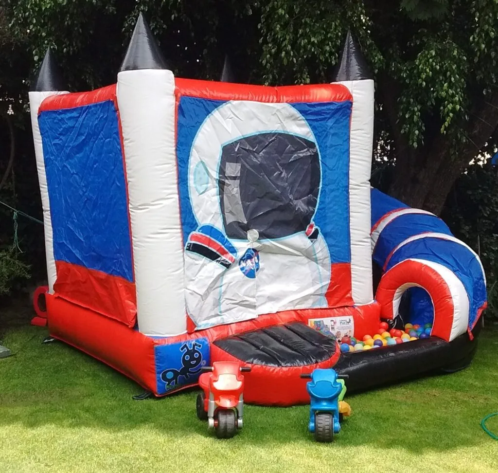 ¡Explora el espacio! Renta el Inflable Astronauta, un castillo espacial vibrante para misiones de juego estelares. Ideal para niños de 2 años en adelante. 🚀🌟